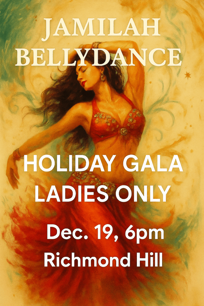 I’m so excited to invite you all to our Holiday Bellydance Gala — a fun and casual ladies-only evening filled with performances, laughter, and dance!